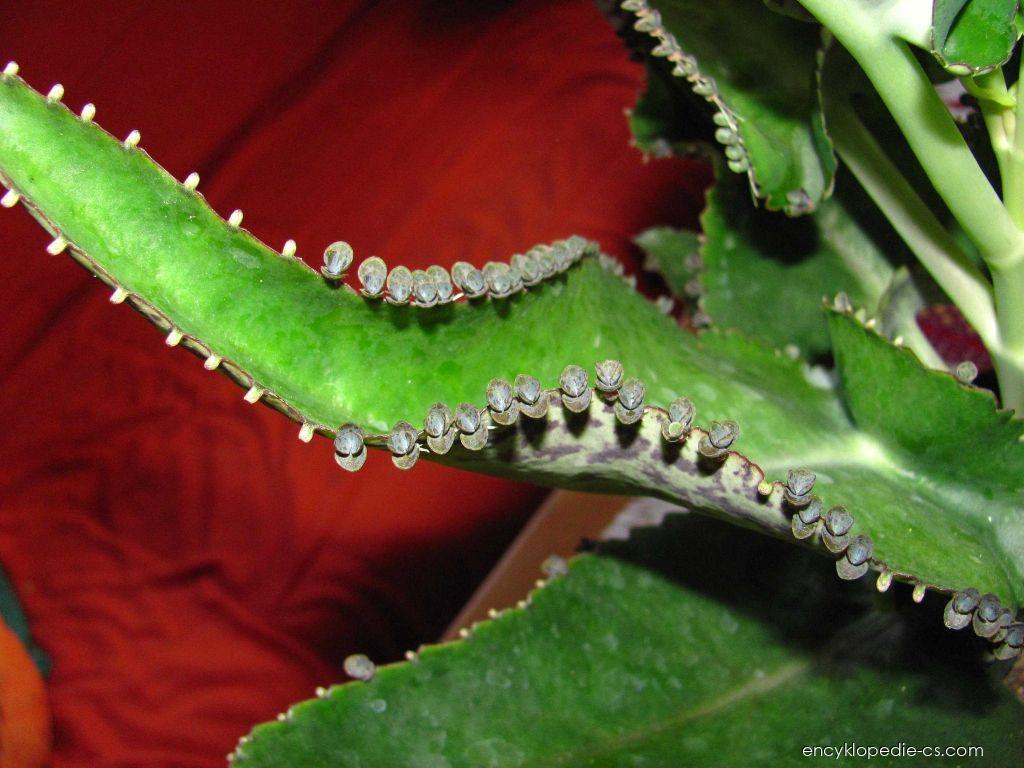 Kalanchoe - kolopejka -list, mladé rostlinky (Kalanchoe daigremontiana) | Encyklopedie-cs.com